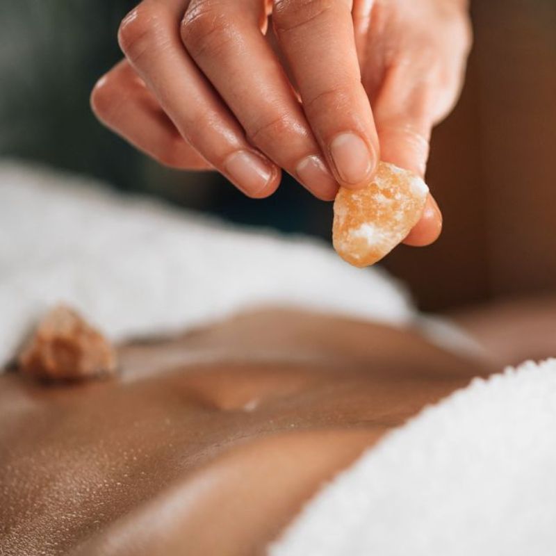 Exfoliació + Massatge Corporal i facial amb pedres fredes amazonites