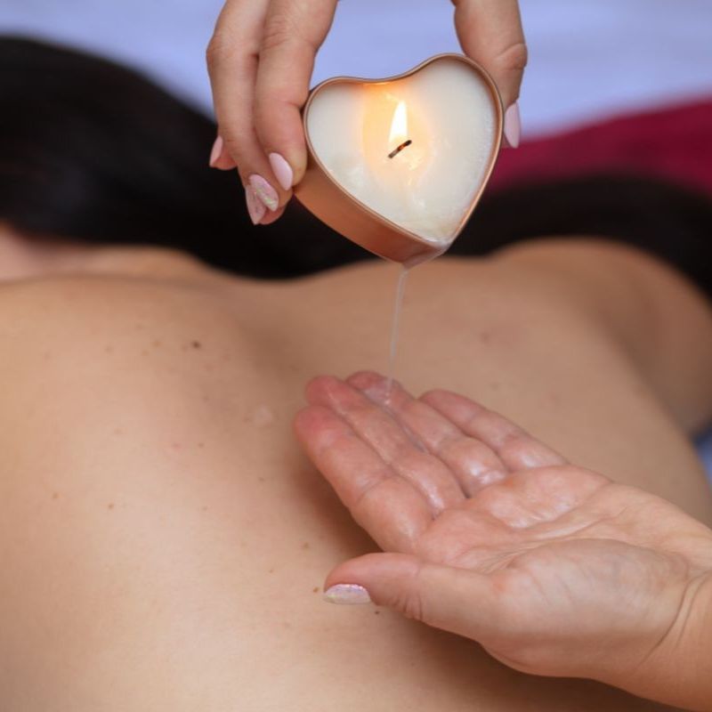 Exfoliant + massatge sensorial amb espelma de mantega de coco, karité i olis essencials. Redueix l’estrès i regenera la pell.